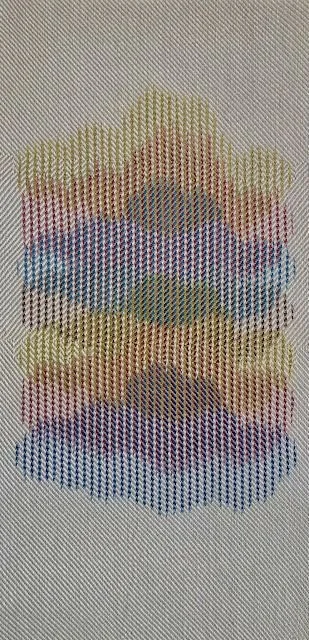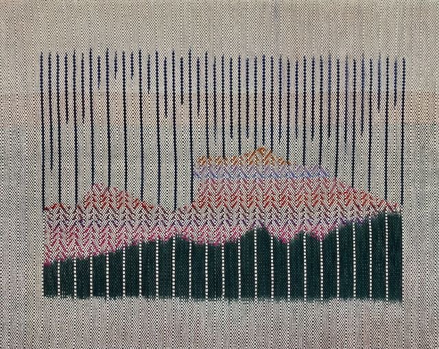 Experimental play using the geometry of the woven grid to create liminal space through line, pattern, and colour.